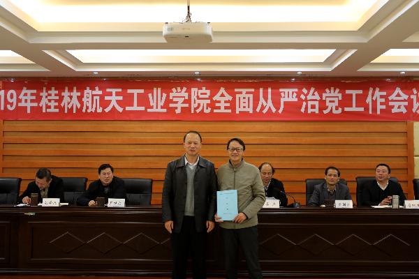 会上,二级党组织代表与学校党委签订并递交了《桂林航天工业学院2019年度全面从严治党工作目标责任书》。