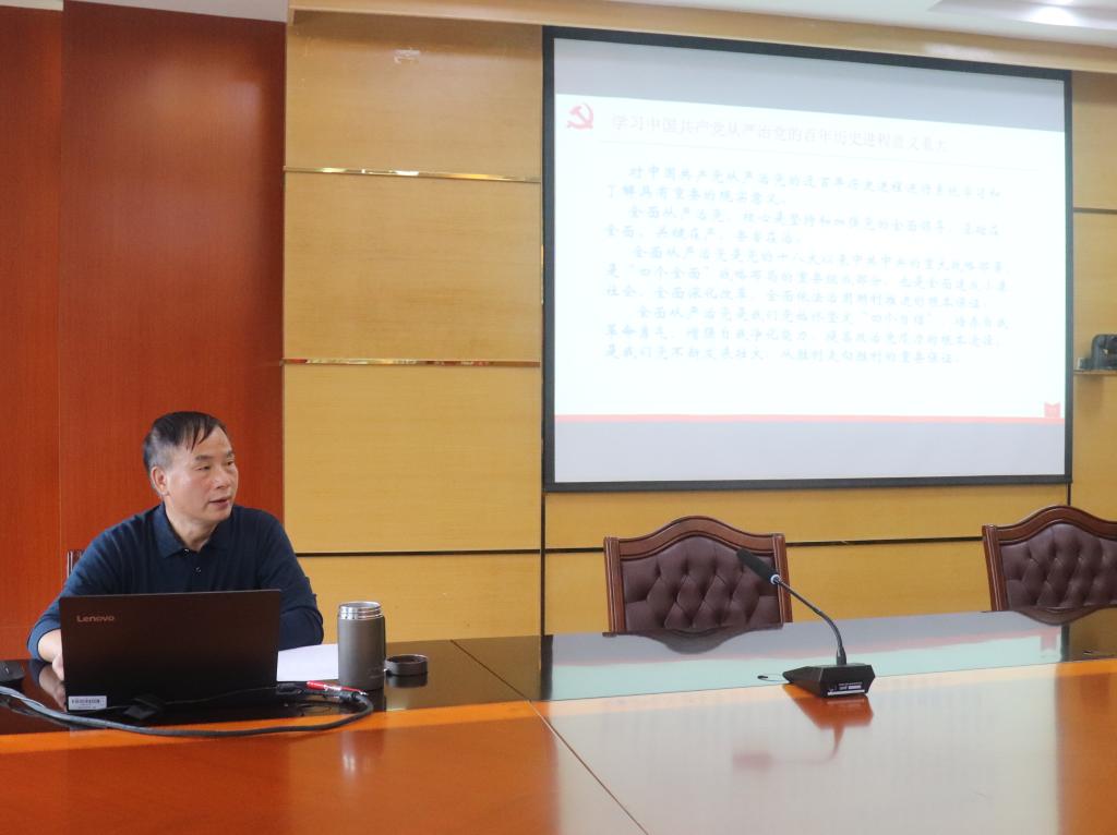 会上,结合党史教育,韦冠武作《PA视讯官方网站100年来从严治党的发展历程》党史教育专题辅导,以时间为轴,用翔实的历史资料和大量事例,从新民主主义革命时期到改革开放新时代,分四个发展阶段,生动地讲述了不同历史阶段从严治党的历史发展和党内治理形态的变化,以及全面从严治党理论的形成和发展。希望纪检监察干部把学习领悟党史、新中国史与从严治党发展历程结合起来,知史爱党、知史爱国,从PA视讯官方网站从严治党发展历程中汲取滋养,脚踏实地、守正创新、砥砺奋进,为学校高质量快速发展作出积极贡献。