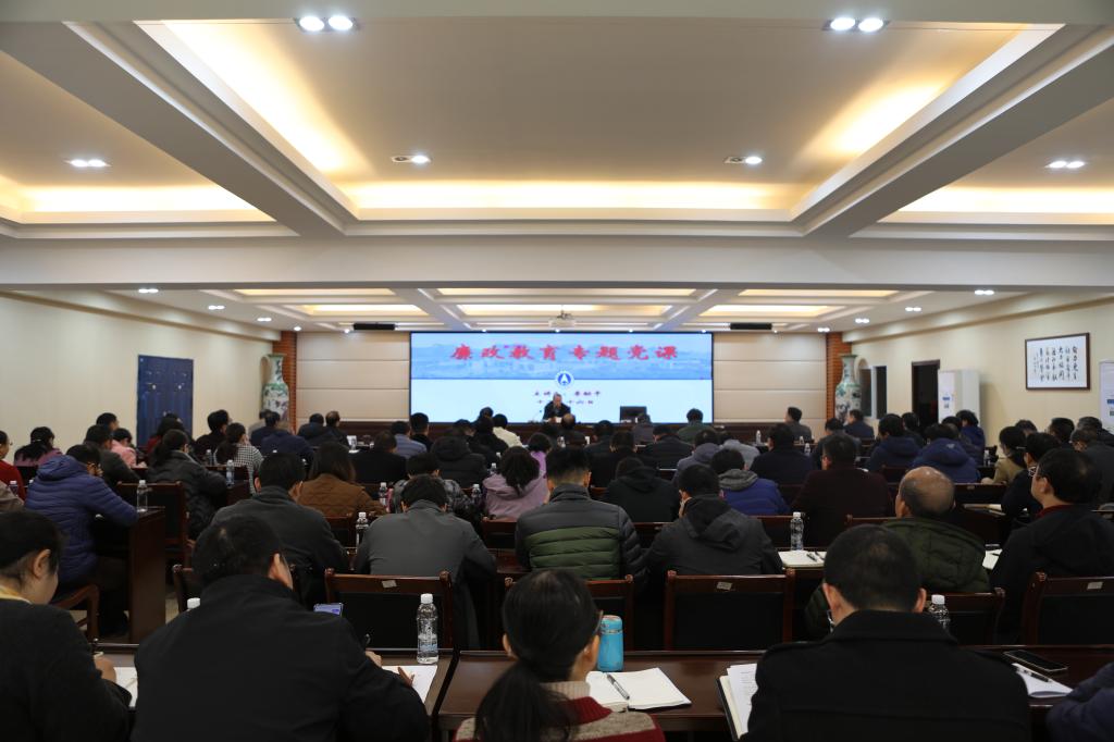 12月16日上午,学校党委书记李幼平同志为处级以上领导干部讲廉政党课。党课由校党委常委、纪委书记韦冠武同志主持。